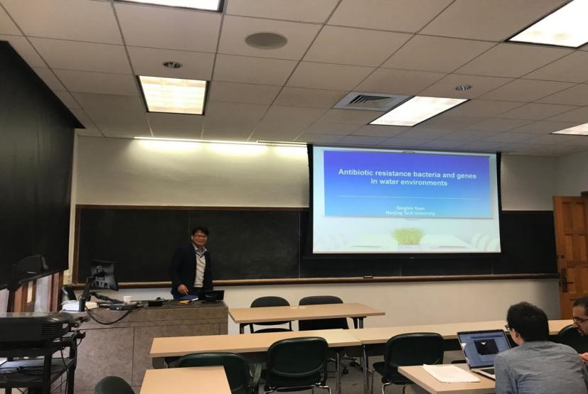 第三次讲座组会的汇报人是袁青彬老师,他汇报的课题是水环境中的抗生素抗性细菌和基因,抗生素的环境污染与生态毒性近年来引起了日益广泛的关注.由于抗生素的滥用首先诱导动物体内产生抗生素抗性基因,从而加速了抗性基因在环境中细菌间的传播扩散,目前,抗生素抗性基因作为一类新型环境污染物,在不同环境介质中的传播、扩散可能比抗生素本身的环境危害更大因此从水环境中去除抗生素抗性细菌和抗生素抗性基因对于阻止抗生素抗性进入环境具有重要意义。