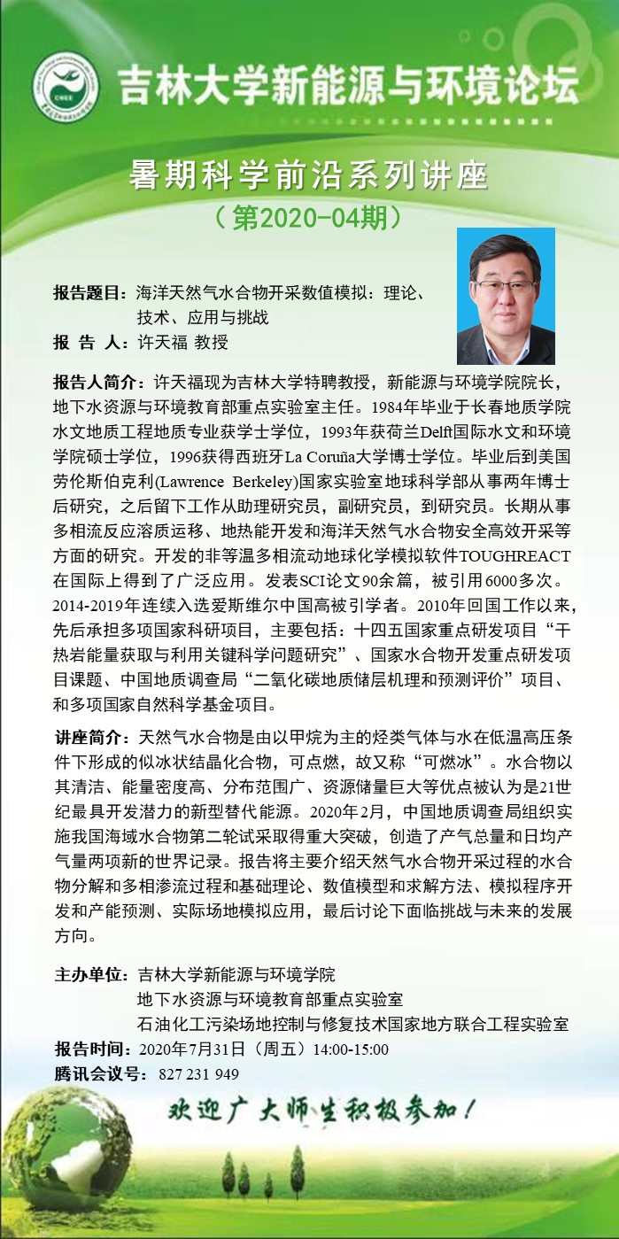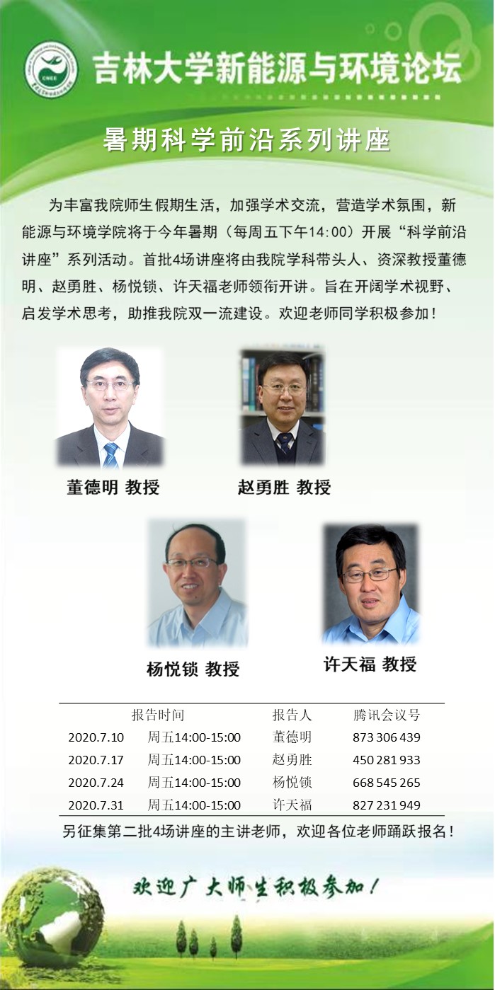自拍视频 新能源与环境论坛——暑期科学前沿系列讲座
