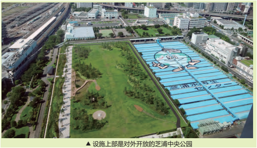 参观伊始,讲解员带领同学们去中心的办公楼厅,眺望四周的景色,告诉大家水处理中心的范围,在中心用地的上方,有芝浦中央公园,讲解员特别提到了在以往,中心的公共用地上尽管可以建造公园等公共设施,但是不能够盖商业建筑,相关的法律进行了修正,在该区域建起了一栋商业建筑(品川SEASON TERRACE),这也从侧面证明了中心的处理工艺对周围的环境影响小,无异味,能够被大众所接受。
