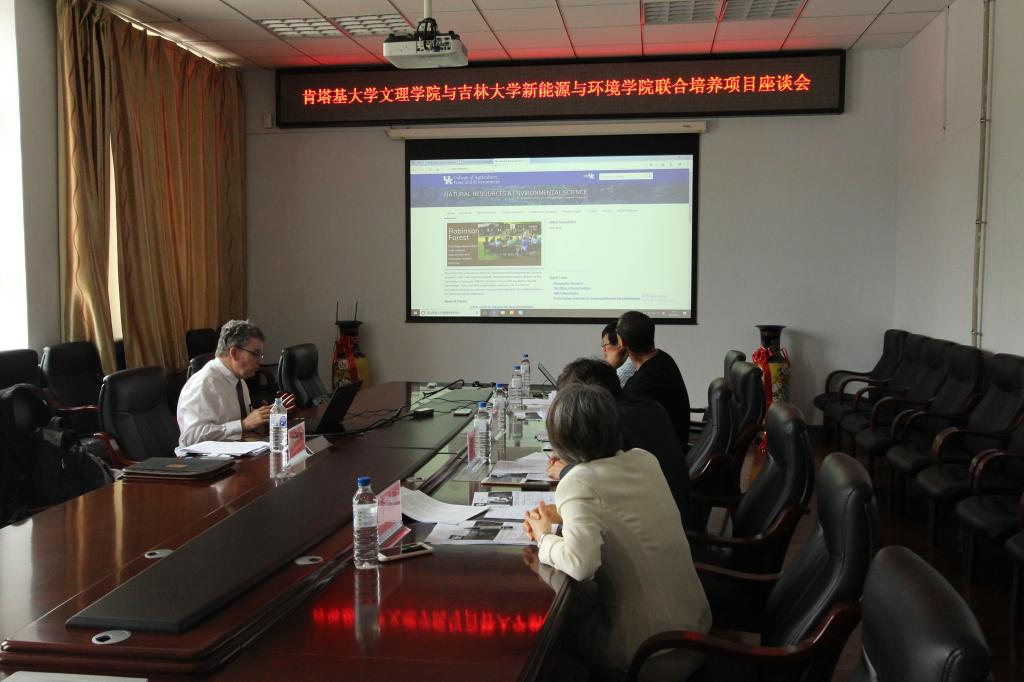 座谈会上,董军副院长对Alan教授的来访表示热烈欢迎,并回顾了学院与肯塔基大学文理学院联合培养项目进展情况,表达了希望能与文理学院完成学科课程对接并进行联合培养合作的意愿。Alan教授向与会教授介绍了文理学院地球与环境科学系的课程设置及培养方案,对拟对接的环境与可持续发展方向2+2本科生联合培养计划和地球与环境科学方向3+2本硕联合培养计划进行了详细的分析。随后,双方就两个方向的培养计划进行了深入的探讨,通过此次座谈会,学院环境科学专业(包括环境化学、环境管理方向)和地下水科学与工程专业与肯塔基大学文理学院就3+2本硕联合培养项目课程学分置换、毕业实习和毕业设计学分认定等问题达成了共识,2+2本科联合培养计划达成了初步合作意向。会议最后,董军副院长表示将尽快落实相关合作项目,尽快完成联合培养课程置换方案并与肯塔基大学文理学院签署3+2本硕联合培养项目协议,并积极推动2+2本科联合培养项目进展。