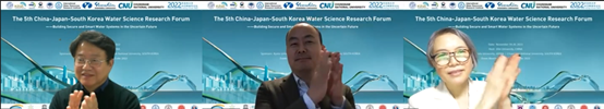和韩国忠南国立大学发起,首创于2017年,本着“学术平等,自由交流,分享经验,促进合作”的原则,旨在共同研究区域水资源对气候变化和人类活动影响的响应规律,为变化环境下水资源合理开发利用和保护提供对策,至今已成功举办五届,国内外与会高校与研究院所参会人数与年剧增,影响人数不断增加。2022年是中日邦交正常化50周年,也是中韩建交30周年,“中日韩水科学研究论坛”为专家学者和青年学生搭建了高水平的国际交流合作平台。冯右骖副教授对本次会议进行总结,对国内外专家学者的高水平学术成果分享表示感谢。韩国忠南国立大学Kwansue Jung教授作闭幕致辞,表示这是一场质量较高、内容丰富、气氛活跃的水科学领域跨国盛会,祝愿“中日韩水科学研究论坛”越办越好,更期待与各位的线下交流!