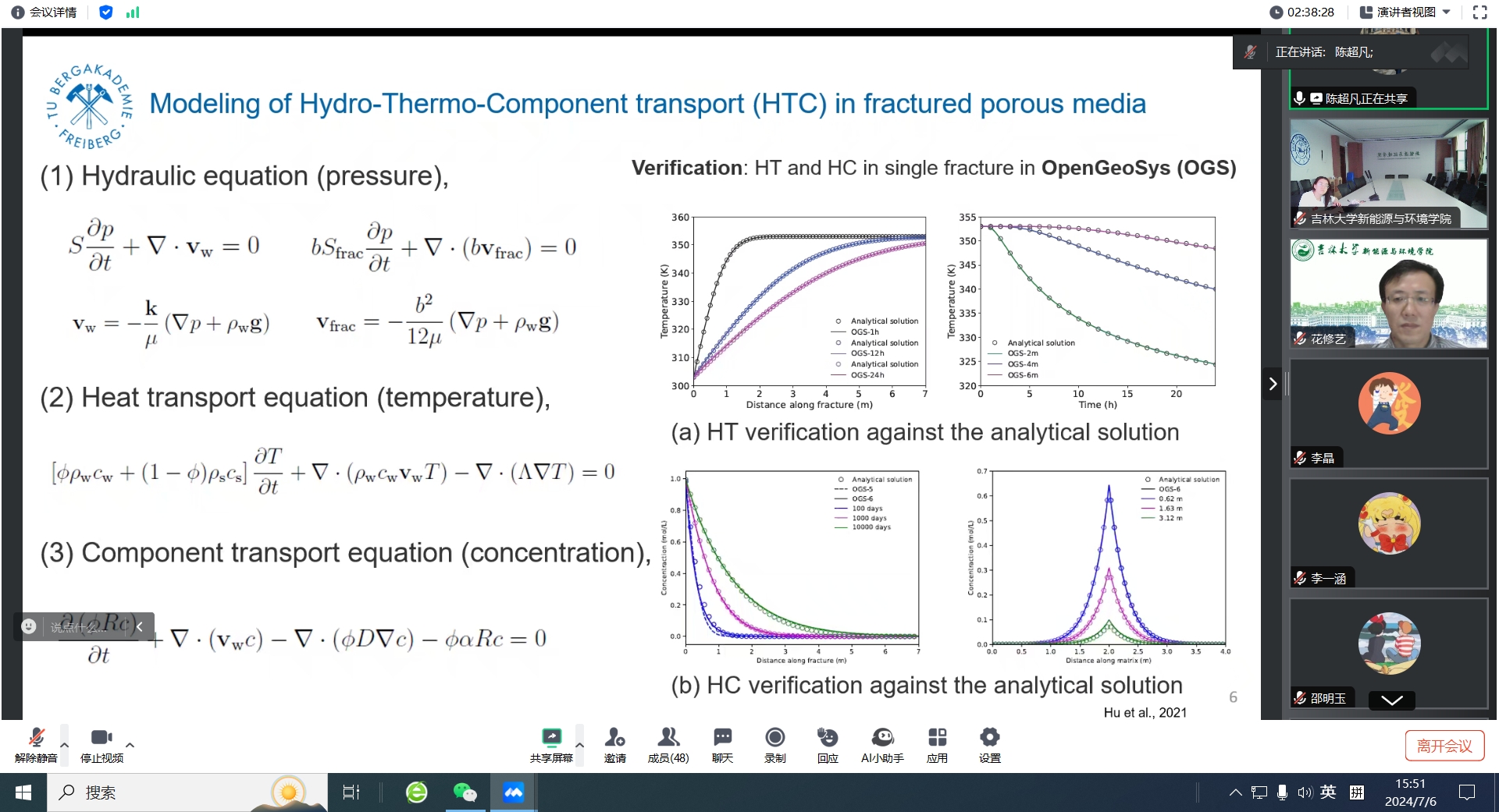 论坛由学院花修艺副院长主持并致开幕词。花修艺副院长从学院的学科设置、师资队伍、科技创新、人才培养、国际合作与交流以及人才引进政策等方面做了简要介绍。随后,6位青年学者围绕CO2地质封存多尺度数值模拟、水环境中典型新污染物的光化学行为及污染控制、磷污染治理与资源回收、水资源可持续开发利用、矿山地热研究等多个水资源、环境、新能源前沿热点领域分享学术成果,并与学院师生就相关内容进行了积极互动和深入交流。最后,花修艺副院长对论坛做了总结,他衷心地感谢各位青年学者的积极参与和支持,并邀请青年学者们将来能有机会到自拍视频