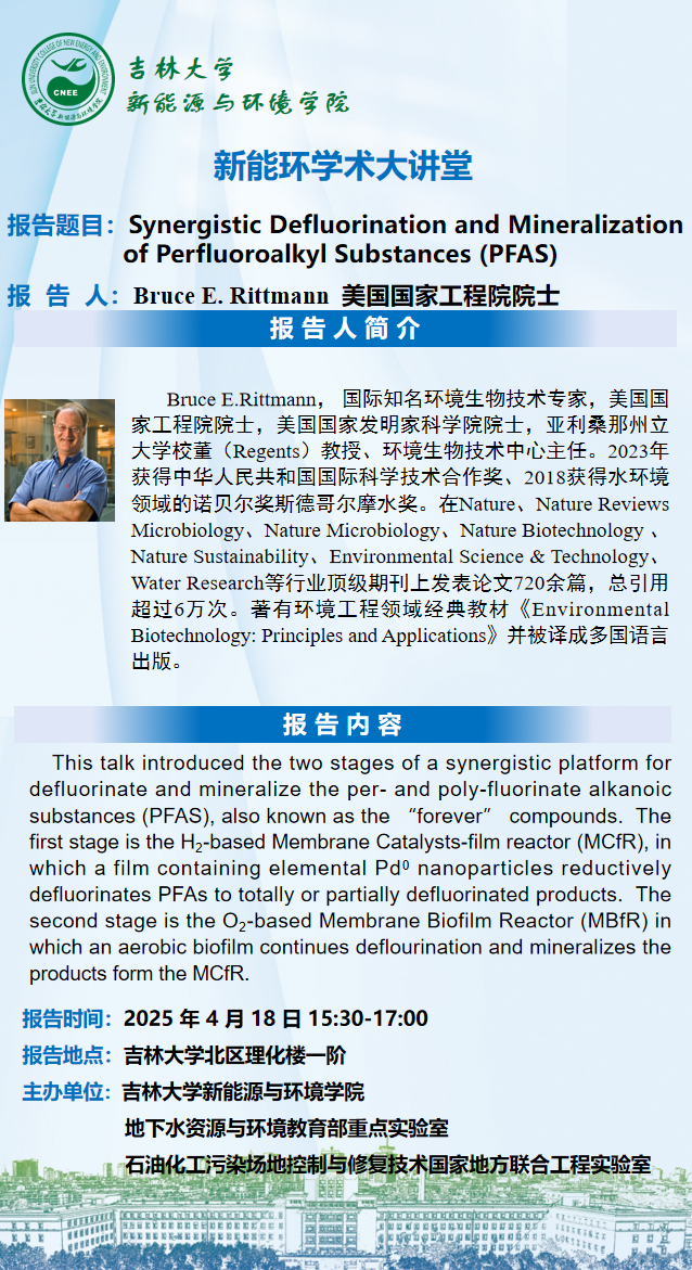 新能环学术大讲堂-Synergistic Defluorination and Mineralization of Perfluoroalkyl Substances (PFAS)