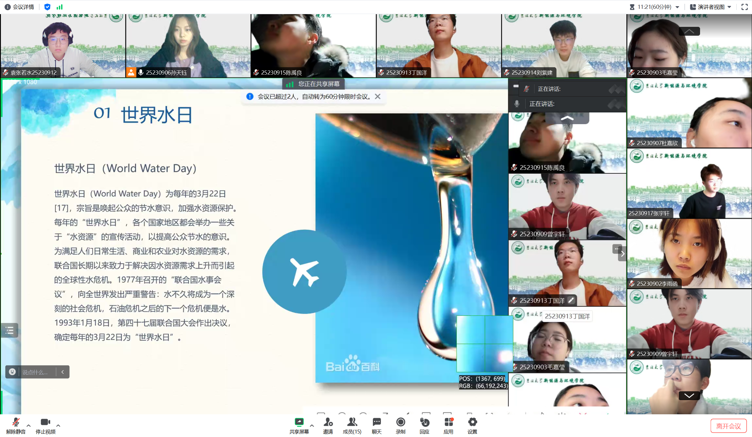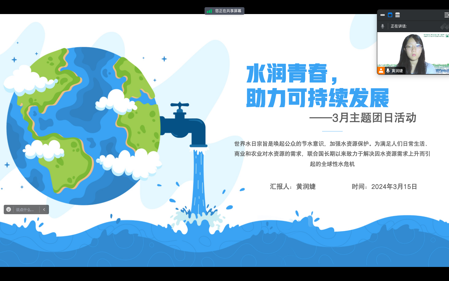 团委组织各团支部在2024年3月开展了《水润青春,助力可持续发展——世界水日》主题团日活动。