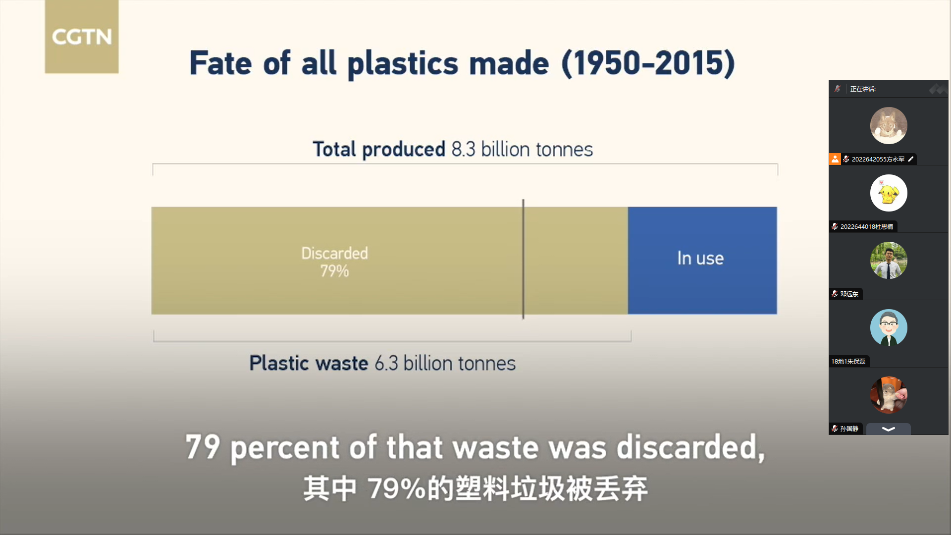 首先,团支部书记播放了由CGTN发布的《中国的“限塑之路”》视频。通过观看视频大家了解到,自1950年至2015年,全球人类共生产了83亿吨塑料制品,其中79%的塑料垃圾被丢弃,12%被焚烧,仅有9%的塑料垃圾被回收再利用。而中国是全球最大的塑料生产国,同时也是塑料制品消费大国。这些塑料垃圾会以微塑料的形式轻易地进入生态系统和食物链中,逐渐累计并严重危害人类的身体健康。但随着中国向一次性塑料宣战,如今国内使用一次性塑料制品的现象大幅减少。虽然“限塑之路”道阻且长,但在全人类的共同努力下终结塑料污染是可以实现的!