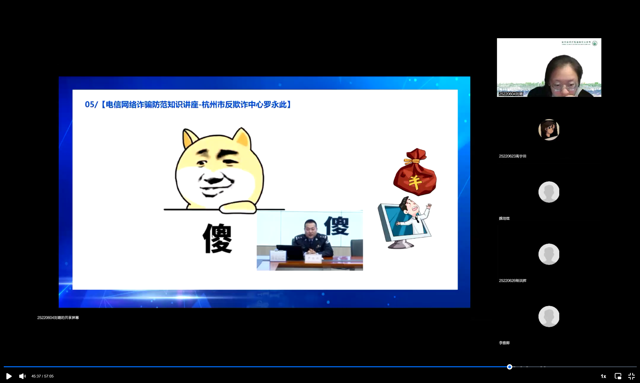 为提高同学们防范电信网络诈骗意识,切实提高广大学生对电信网络诈骗犯罪的识别和应对能力,自觉抵制非法校园贷,维护大家的财产安全,净化校园环境,2023年4月12日晚上19时,自拍视频