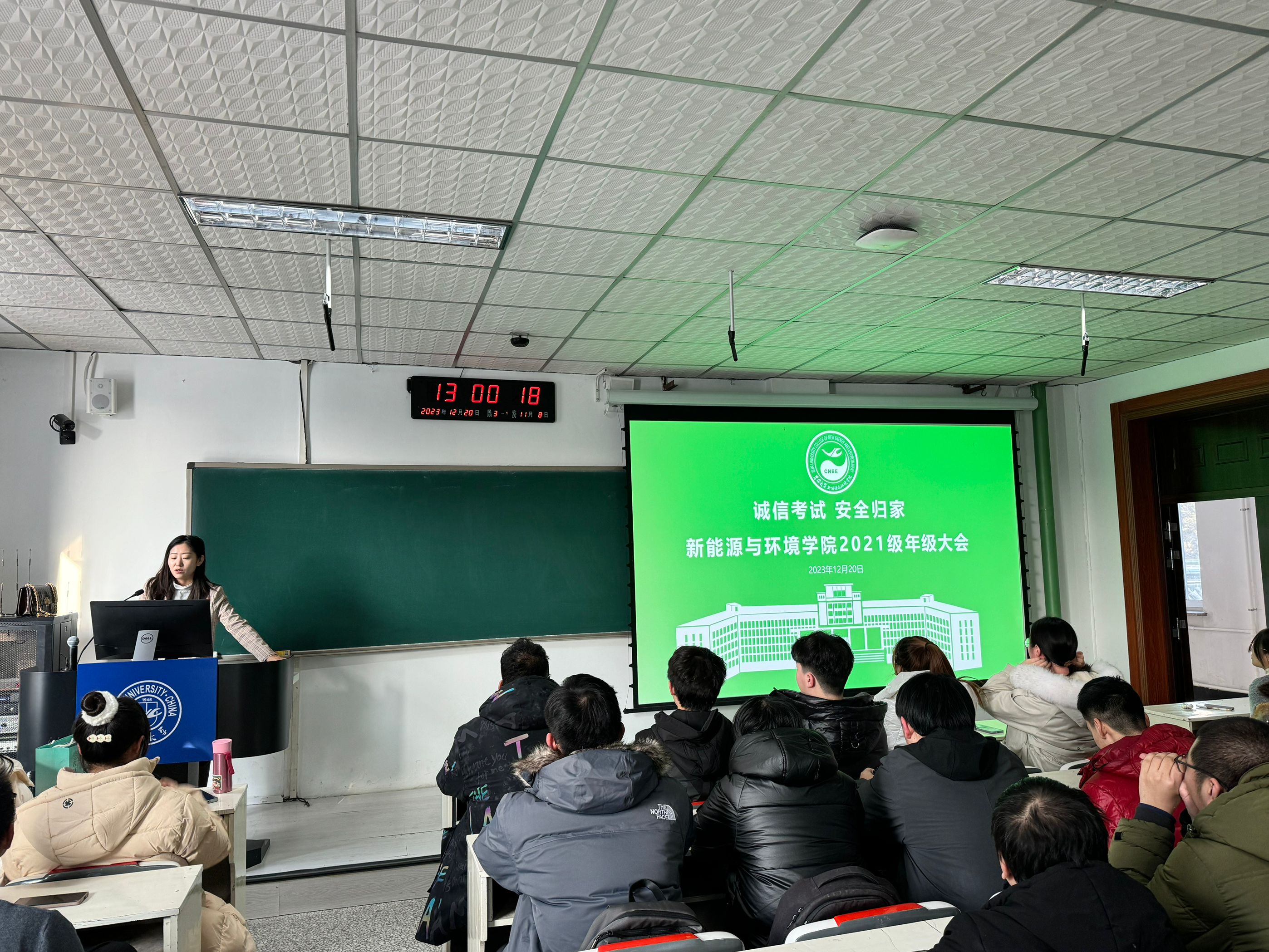 2021级年级大会如约召开,会议主题为“诚信考试,安全归家”。