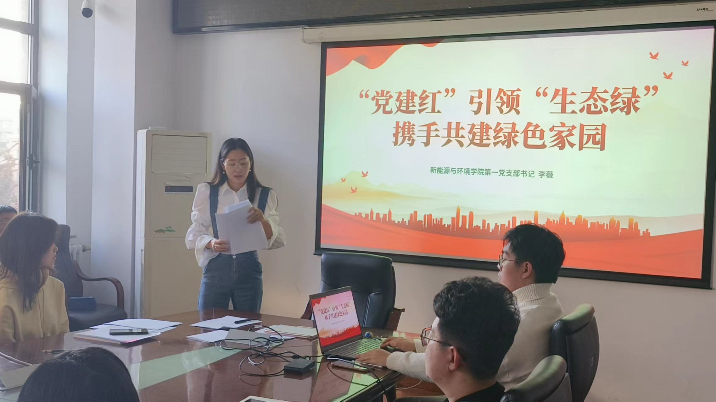本科学生第一党支部和第二党支部以共上一堂党课的方式开展“‘党建红’引领‘生态绿’携手共建绿色家园”主题党日活动,主讲人为自拍视频