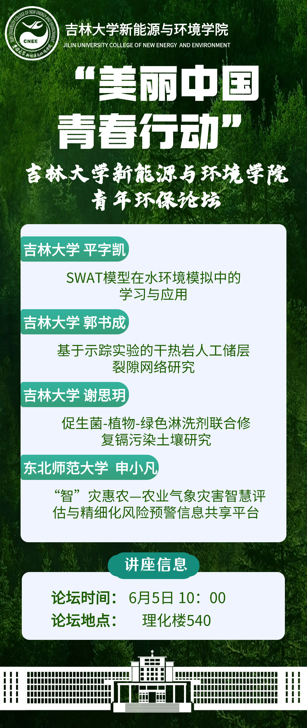 联合东北师范大学环境学院共同举办“美丽中国,青春行动”青年环保论坛活动,来自两个学院的4名本科生分别进行现场汇报分享。自拍视频