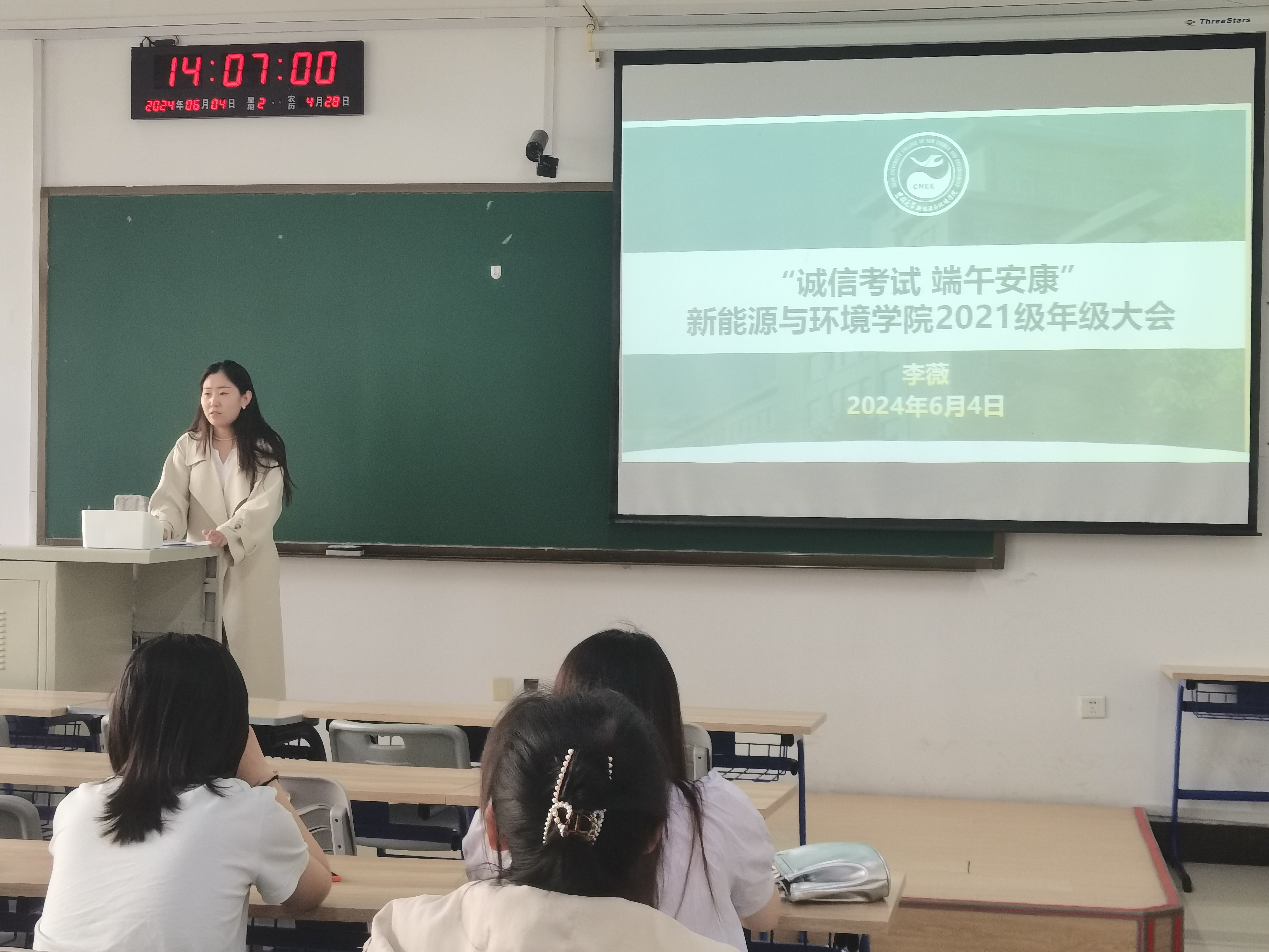 学生工作办公室全体辅导员于2024年6月5日-6日先后组织各年级同学开展了“诚信规范,安康端午”主题年级大会。