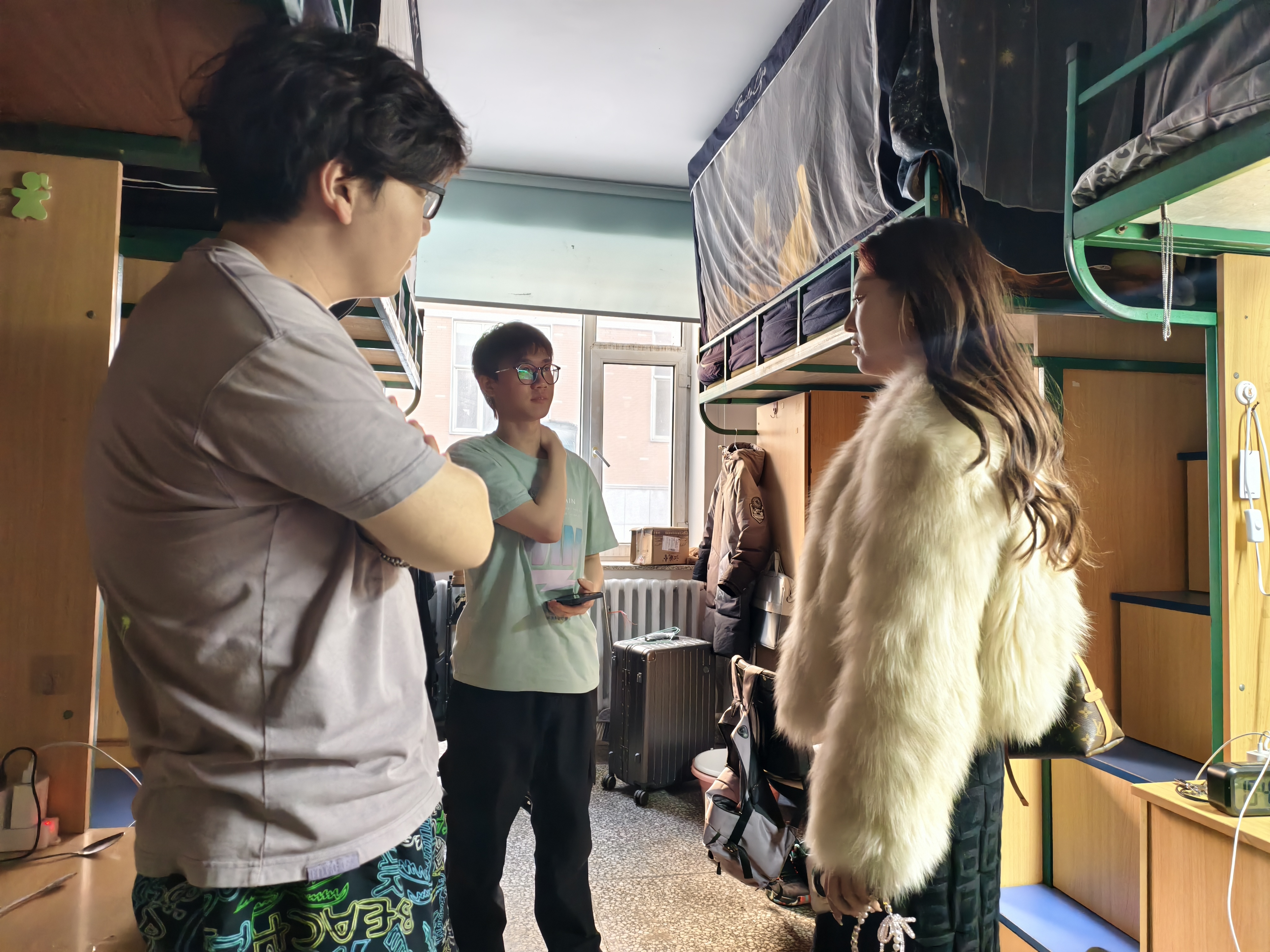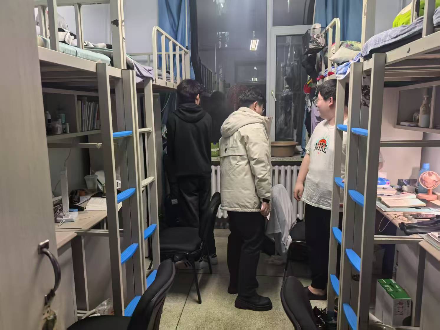 3月11日,2024级新生辅导员助理姜兆轩进入南苑一公寓,检查寝室卫生,了解学生学习生活动态,同时询问近期部分转专业学生的考试情况。