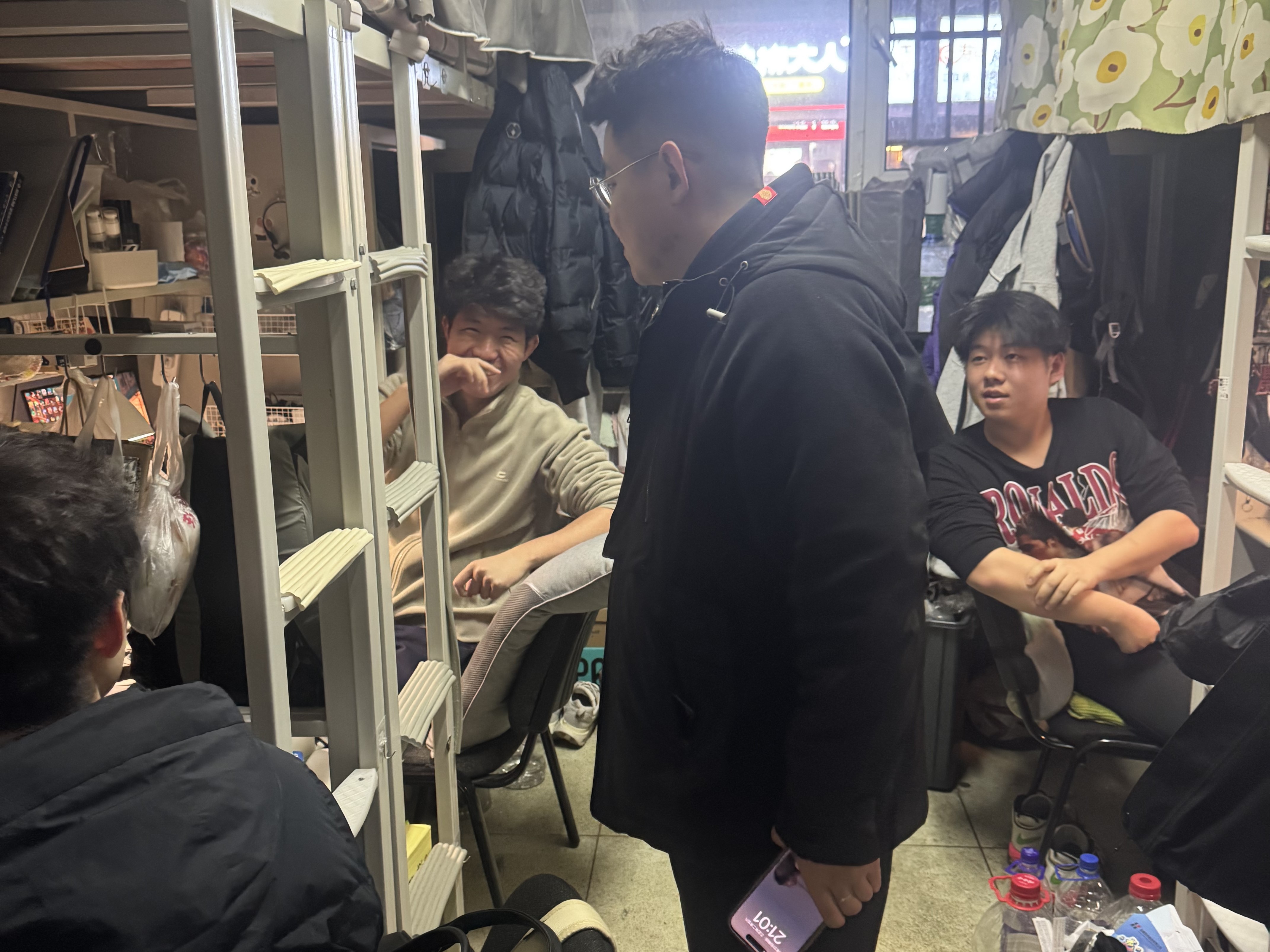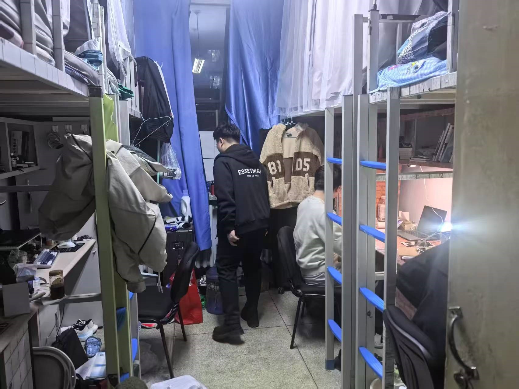 3月27日,2024级新生辅导员助理姜兆轩进入中心校区南苑一公寓,检查寝室卫生及违章电器使用情况,同时了解转专业学生寝室调整情况,叮嘱他们及时与转入学院取得联系不要错过通知。