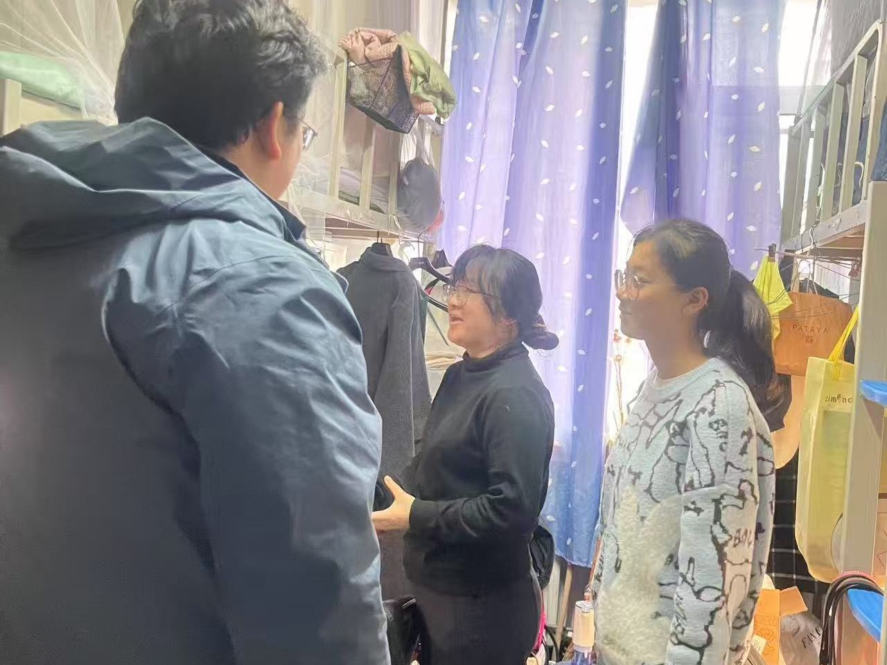 3月26日,2023级辅导员姜岳彤老师进入《热能工程基础》课堂,了解专业学生到课情况及上课互动情况。本次课程共1人未到,已对其进行批评教育。27日,姜老师走进南苑一公寓寝室,了解近期降温靠门口宿舍温度情况,同时叮嘱转专业成功学生及时进入学习状态。