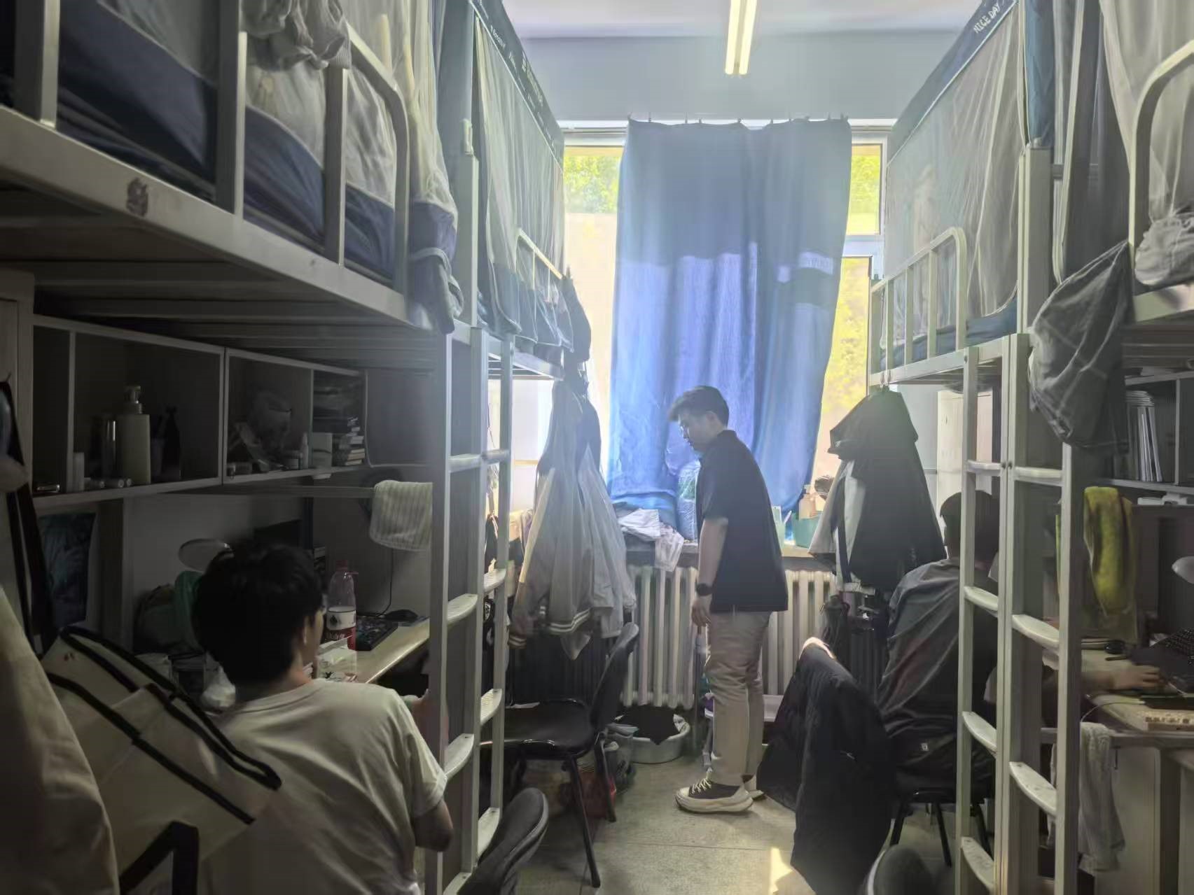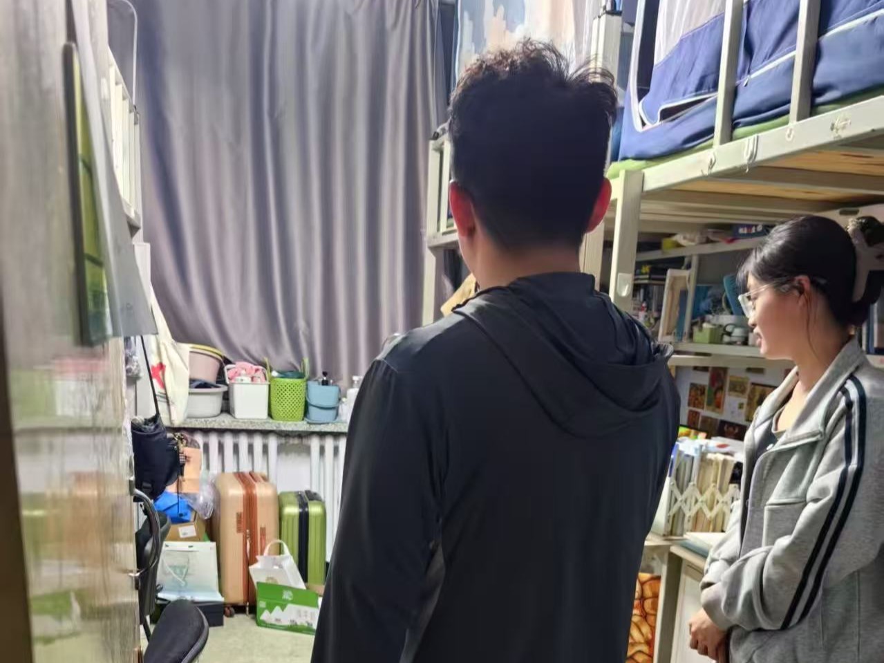 6月13日,2024级新生辅导员助理姜兆轩进入南苑一公寓寝室,检查寝室卫生情况和消防安全情况,同时提醒同学们按时完成职业规划慕课期末考试。
