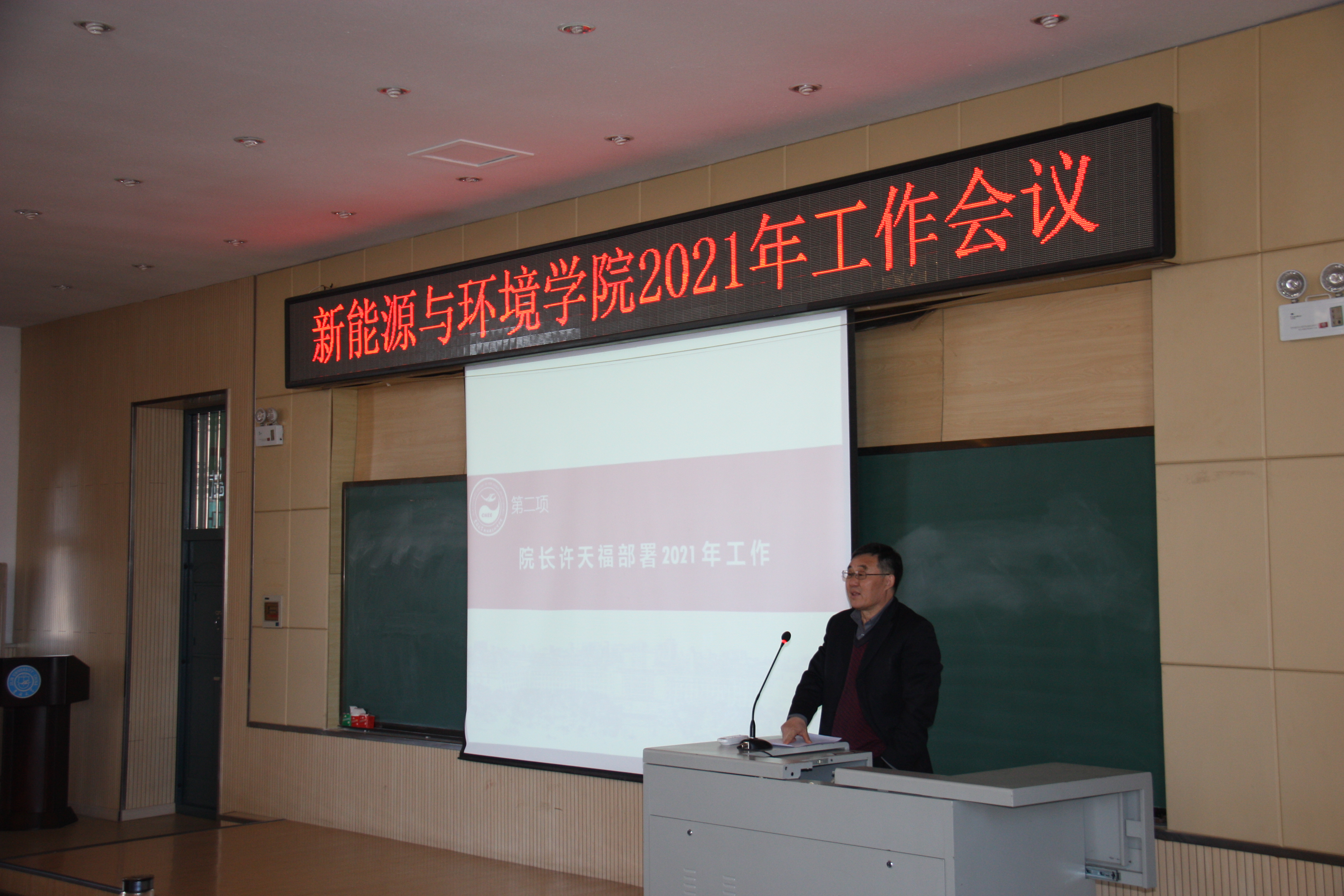 院长许天福在院长工作报告中简要回顾了学院2020年在学科与师资队伍建设、本科教学、科学研究和国际交流与合作等方面取得的成绩,并对学院2021年在学科建设、师资队伍和人才引育、科技创新与国际合作等重点工作做了具体的部署。许院长强调今年是“十四五”规划的开局之年,学院工作要开好局,起好头,希望全院教职工积极进取,努力奋进,为学院发展尽责尽力。