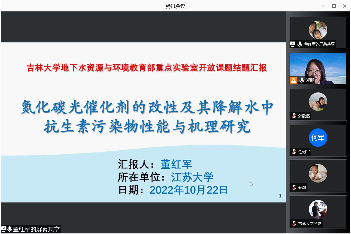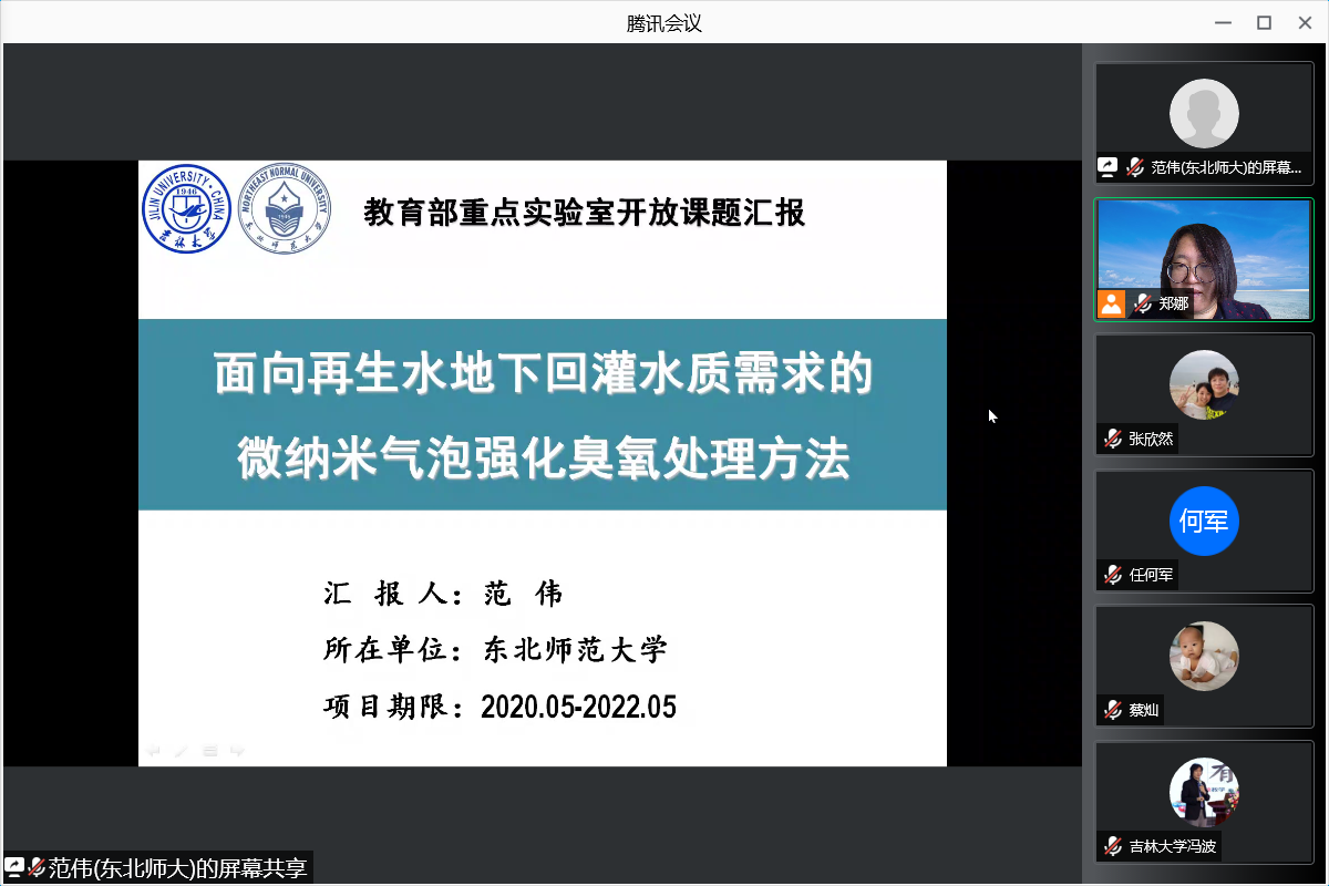 地下水资源与环境教育部重点实验室(以下简称“实验室”)线上举办了重点实验室开放课题(2020-2022)答辩报告会,会议参加的人员包括:重点实验室主任许天福教授、重点实验室首席科学家苏小四教授、重点实验室副主任王福刚教授和郑娜教授、重点实验室委员花修艺教授以及重点实验室多名教授。郑娜副主任主持会议,邀请东北师范大学范伟副教授、江苏大学董红军副教授、中山大学的张欣然副教授、油气藏地质与开发国家重点实验室蔡灿副教授、大连理工大学郑嘉男助理研究员围绕地下水资源的可持续开发、地下水土环境污染形成、控制与修复及地下新能源开发过程中渗流与环境问题等领域展开了精彩的报告。会议期间多位老师与报告人进行了深入的讨论,促进了兄弟院校的科研工作者与重点实验室老师之间的交流,为进一步的合作和发展奠定了夯实的基础。