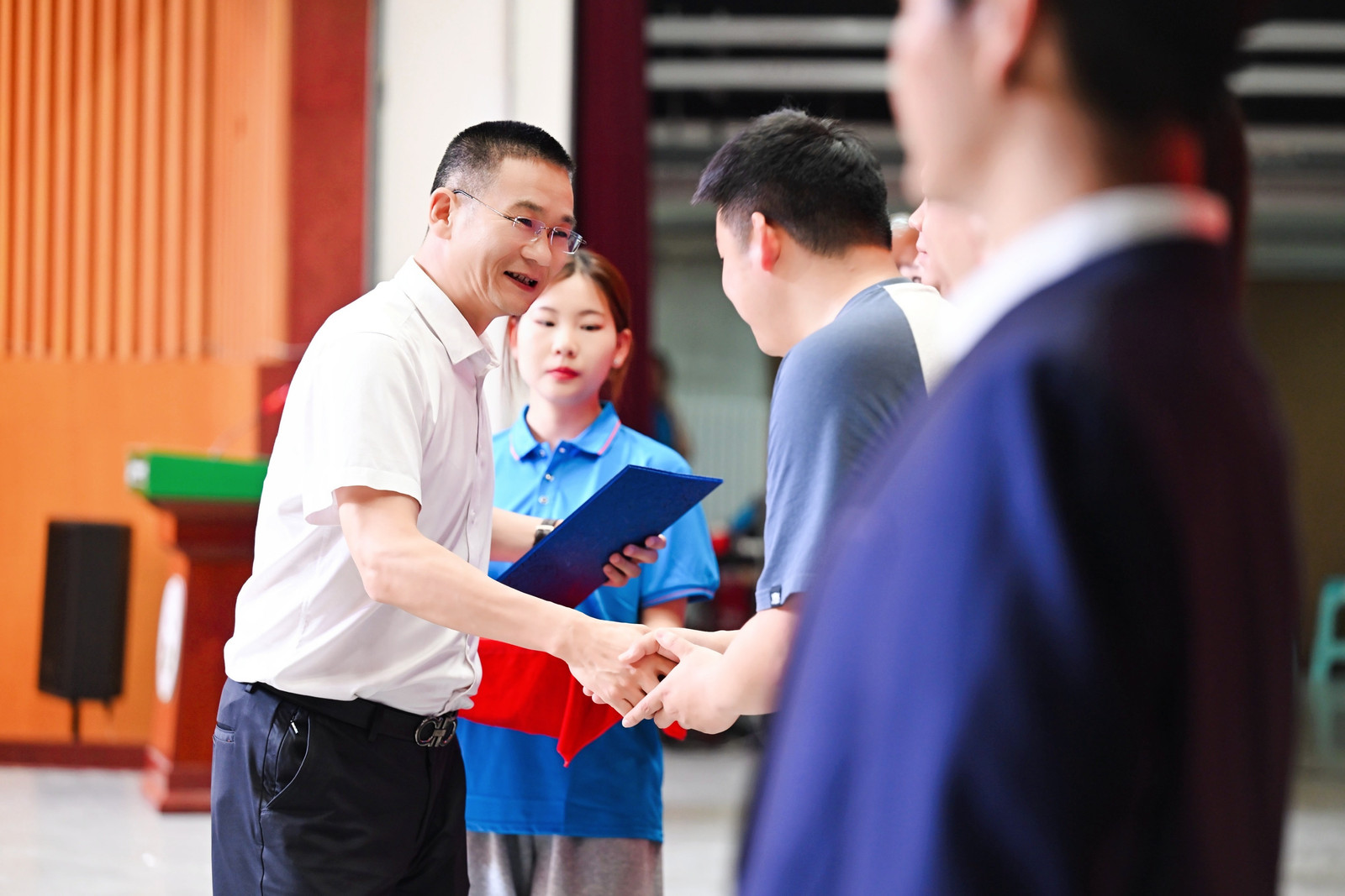 2025届优秀毕业生的决定》,院长董双石、党委书记汪祥松为45名优秀毕业生代表颁奖。