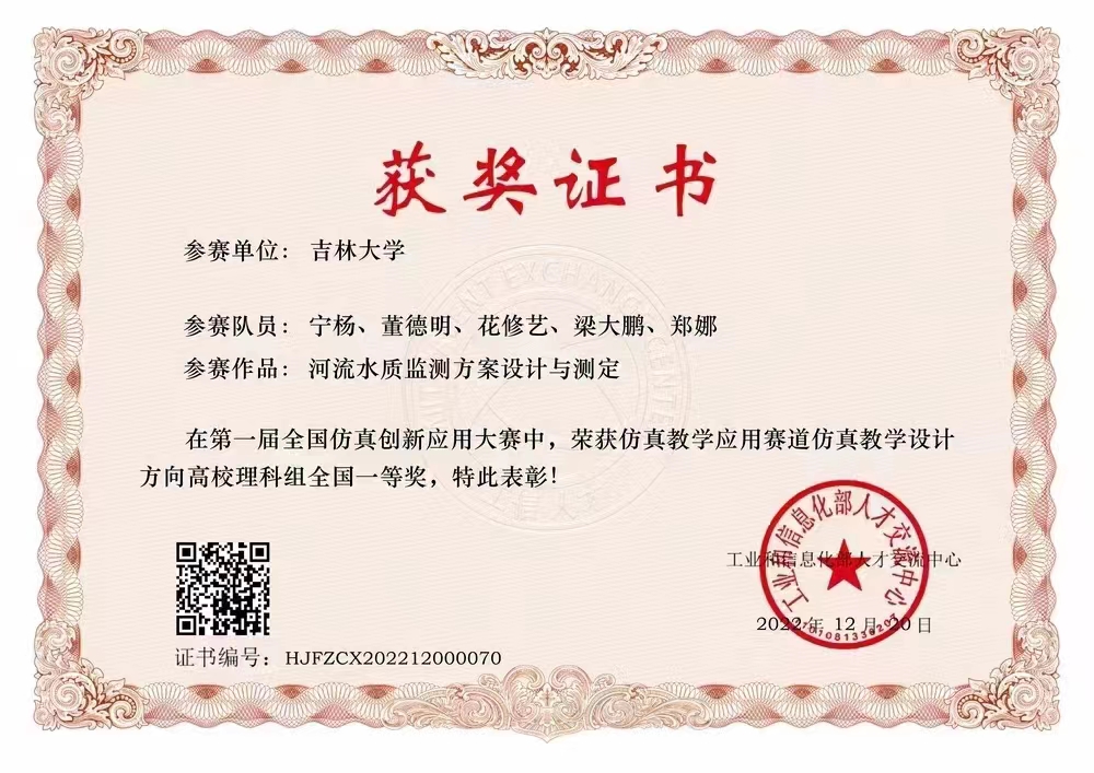 优秀基层教学组织;“河流水质监测方案设计与测定”获全国仿真创新应用大赛一等奖“包气带与饱和带渗流运动模拟”获全国仿真创新应用大赛吉林省赛二等奖;获批学校规划建设教材立项4部,出版规划教材2部;获批吉林省高教科研课题1项,自拍视频