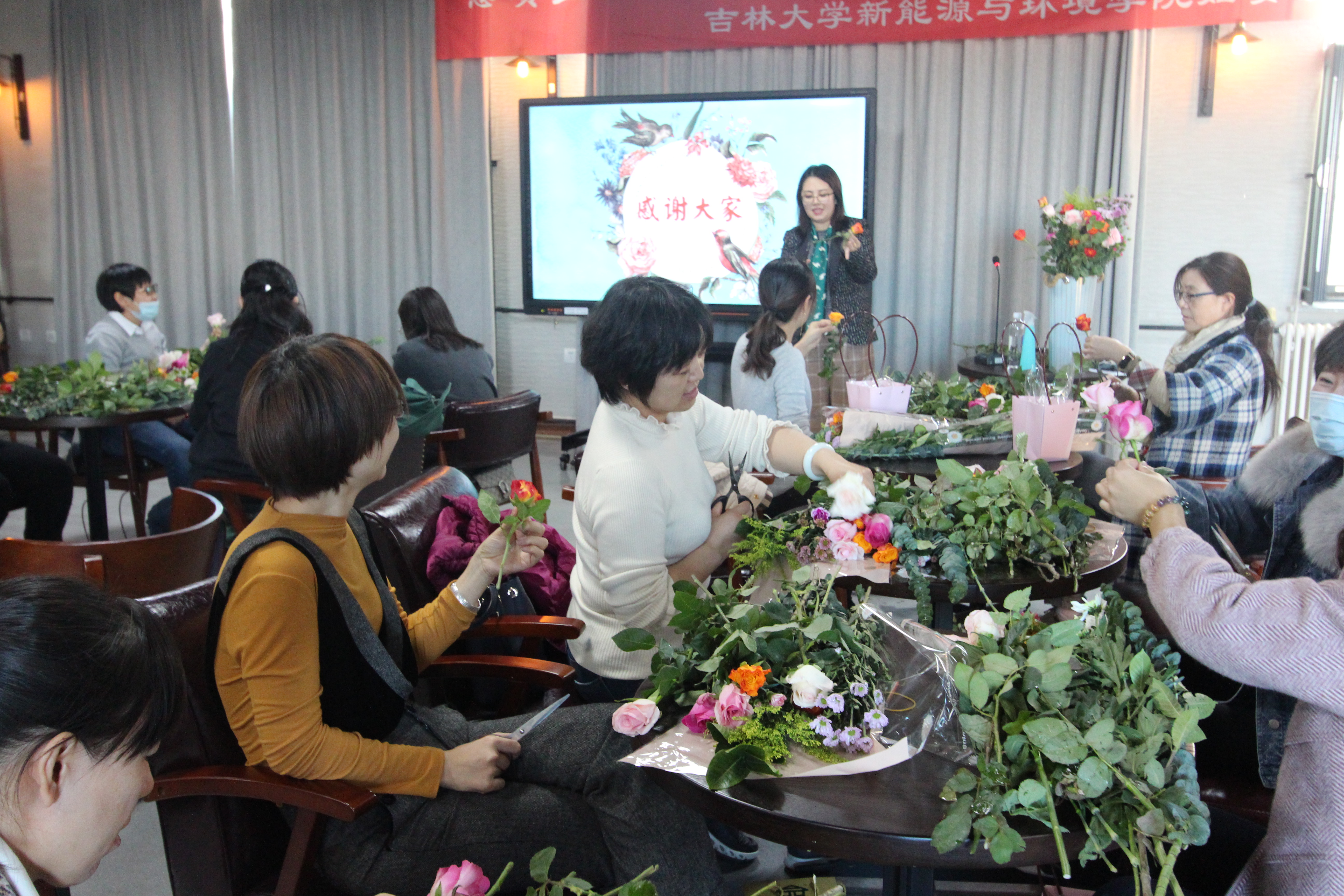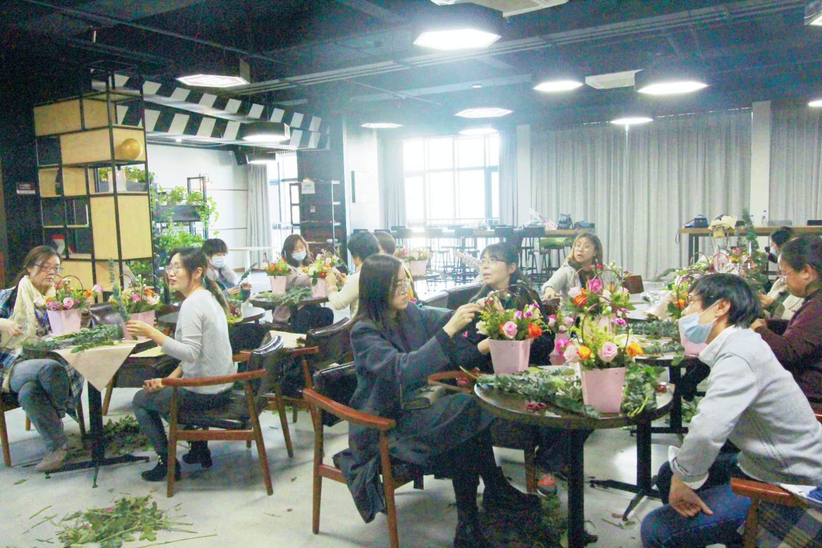 培训课上,刘春博老师向大家介绍了插花的历史、传统插花和现代插花的特点,详细讲解了插花的要领及技法,并现场进行了插花演示。女教工们在花艺师的指导下认真修剪,精心构思,尽情地发挥创作力,将一朵朵经过精心挑选与修剪的鲜花搭配出富有层次感、艺术感的造型。最后,随着一件件成品出炉,这场生动唯美的插花活动也在欢声笑语中进入了尾声。