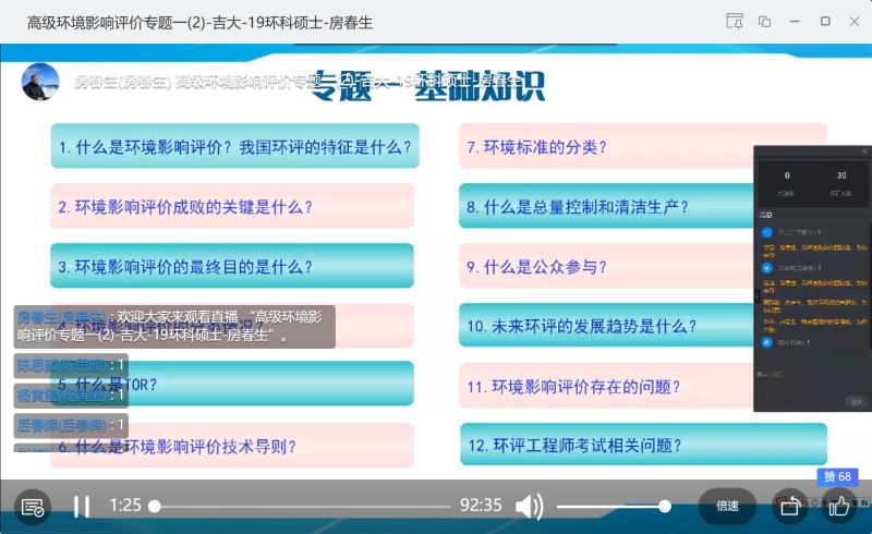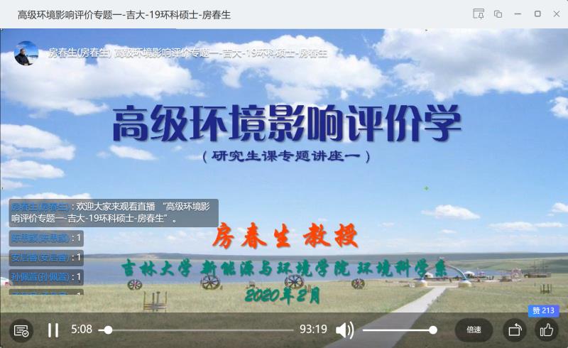 房春生教授开设的环境科学专业硕士研究生专业课《高级环境影响评价学》顺利进行了首次网络直播授课,成为自拍视频