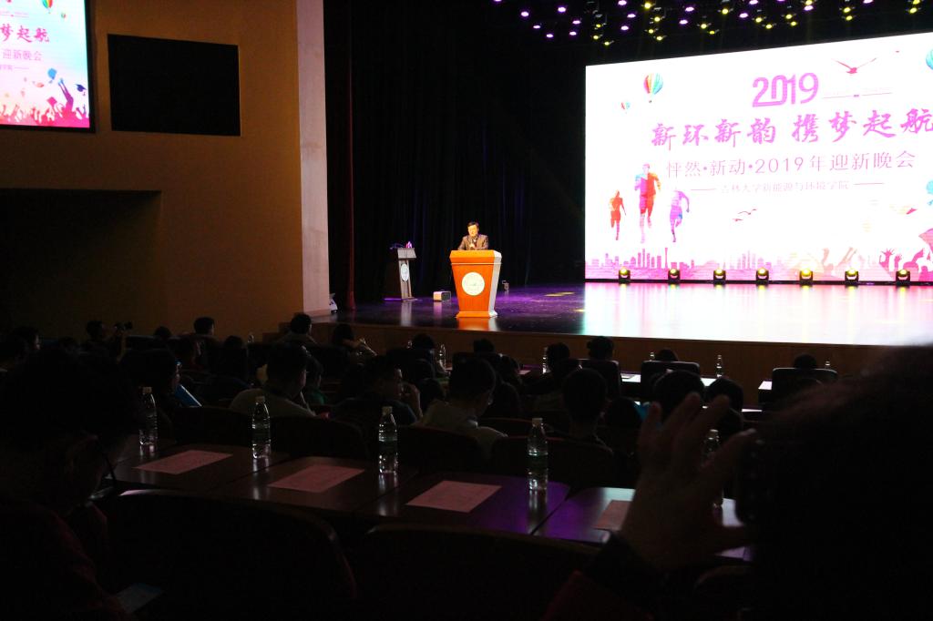 院长许天福老师对新同学们提出了在今后学习和生活方面的希望与祝福,鼓励同学们争做“德智体美劳五好学生”,许天福院长短促而有力的讲话后,晚会正式开始。