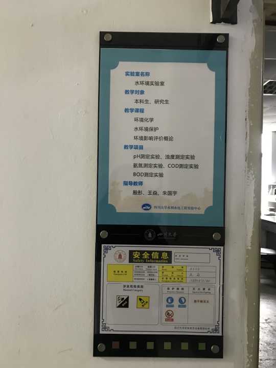 首先参观了四川大学国内一流的水力学与山区河流开发保护国家重点实验室(图1),该实验室是建设山区河流开发与保护领域具有国际引领地位的世界级开放性应用基础研究中心。该中心试验场地规模庞大,有循环水系统、陡槽系统、减压箱系统等,近年来共承担科研项目1501项,发表SCI论文680篇,授权发明专利176项。之后参观了四川大学水情自动测报系统实验室(图2),该实验室是我们专业认证缺欠的地表水实验室,该试验系统包括一体化水位、雨量监测站,管道流量监测站,分体式水位、雨量监测站及超短波水位、雨量监测站等设备。此外,还看到了水力学实验室(图3)仪器排水设施布局合理,排水槽深度设计规范,实验后排水通畅,为我们水力学实验室提供了改进排水问题的方案。
