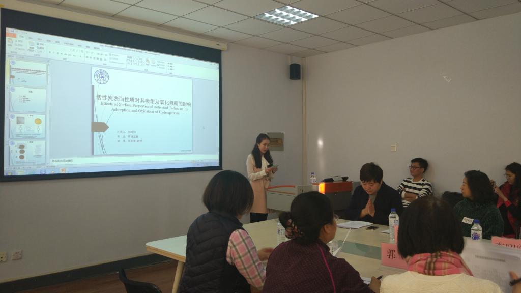 本次论坛讨论流程为报告者首先论述自己的科研成果,之后评委老师进行提问点评,指出存在的问题并评审打分。现场气氛热烈,研究范围广泛。本次论坛涉及到《人工回灌条件下地下水中腐殖酸胶体的迁移规律研究》、《海底甲烷泄漏条件下自生矿物形成的实验和数值模拟研究》、《单分散的介孔硅纳米球负载纳米零价铁的表征、对硝基苯的反应活性以及在多孔介质中的迁移性能研究》等多方面内容,从实验室模型到现实环境进行了深入分析。同时评委老师针对学生研究内容中存在的问题提出了专业的指导意见,并与同学们进行讨论。