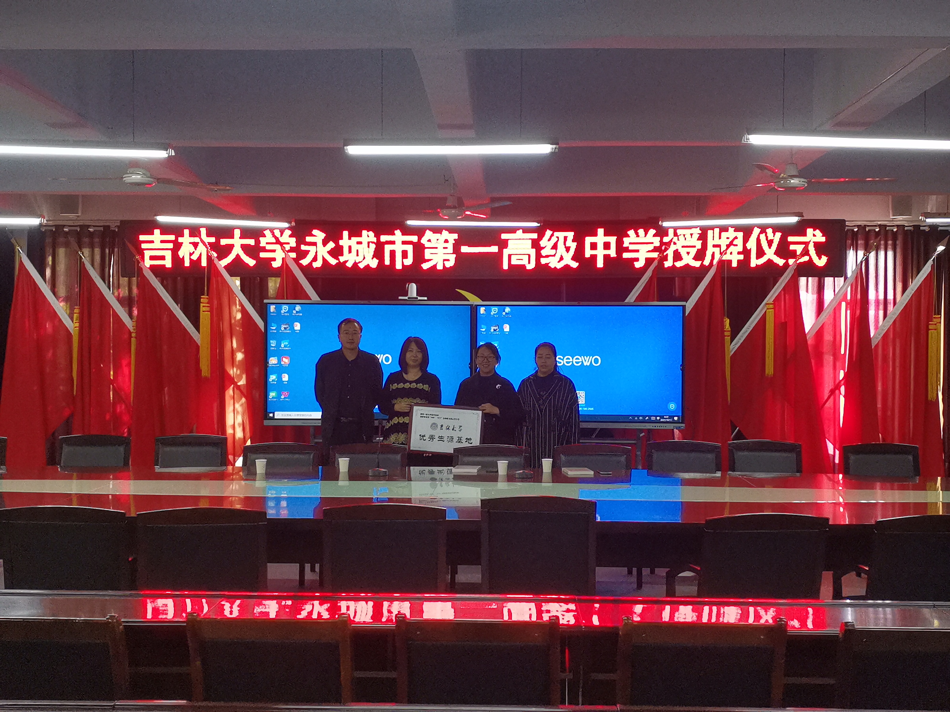 优秀生源基地”牌匾。