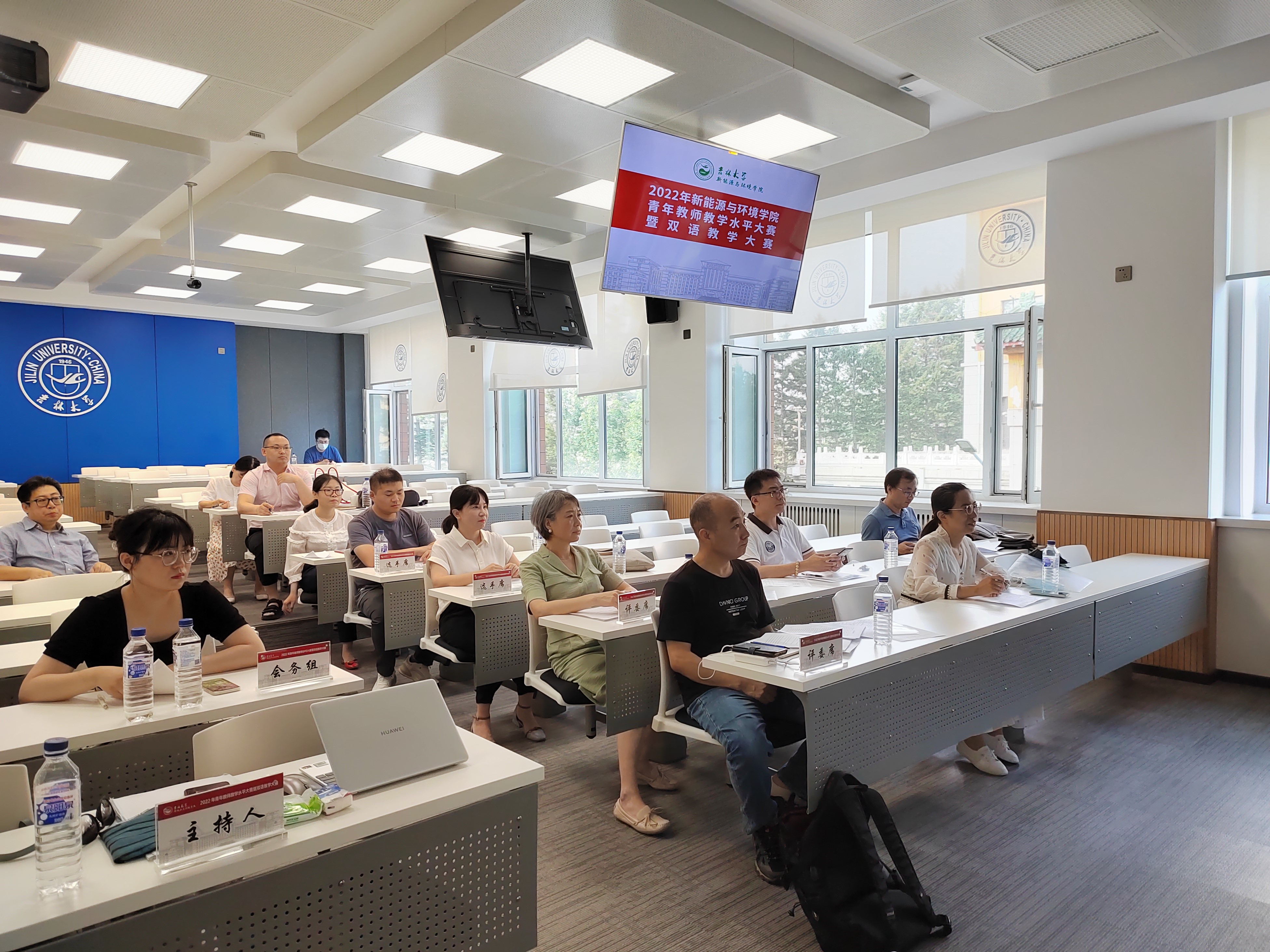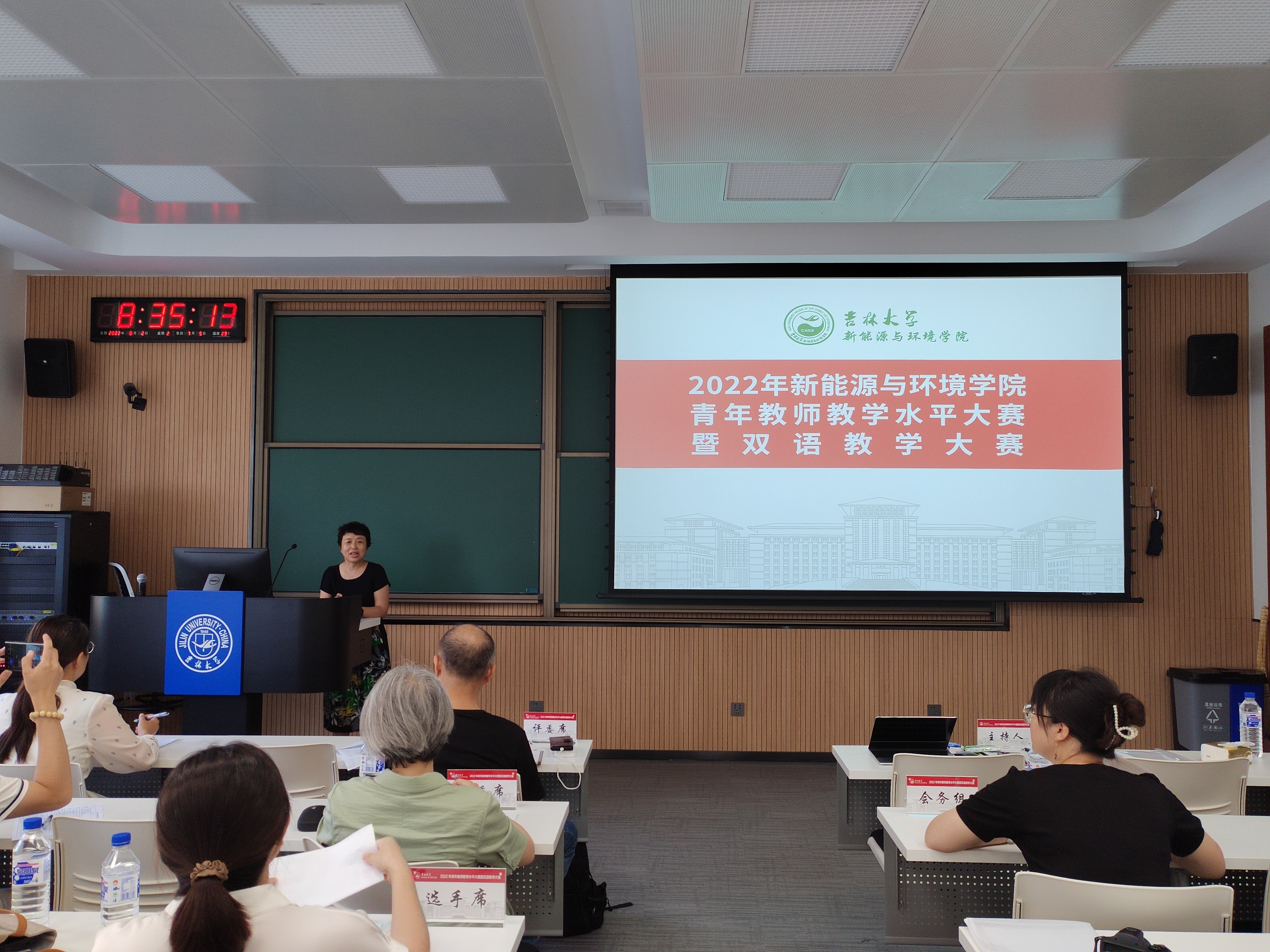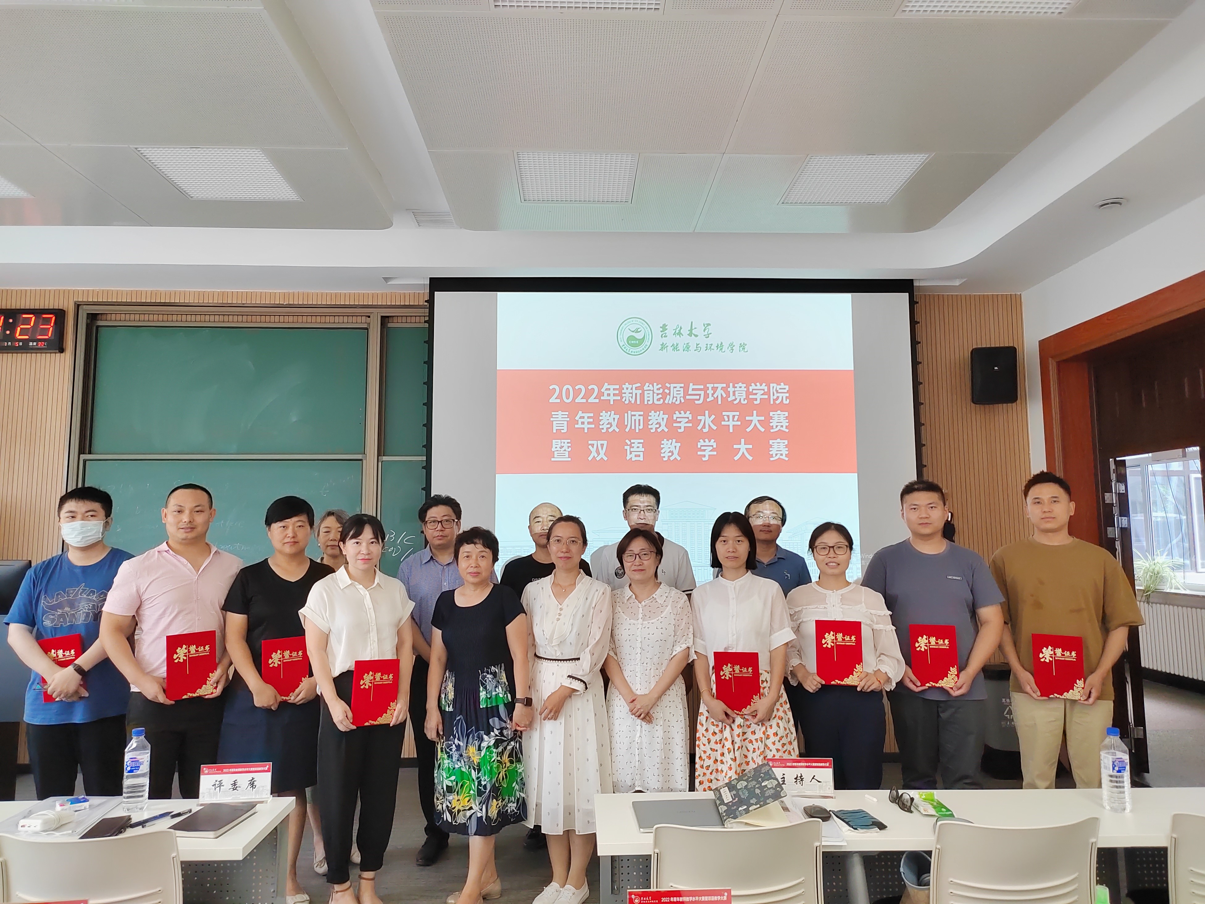 于2022年8月2日在朝阳油页岩实验楼201举行了学院''青年教师教学水平大赛暨双语教学大赛''。本次比赛旨在全面贯彻落实《中共中央国务院关于全面深化新时代教师队伍建设改革的意见》,进一步弘扬教学工作的主旋律,全面提高青年教师的职业素养和教学能力,促进一流本科人才培养。