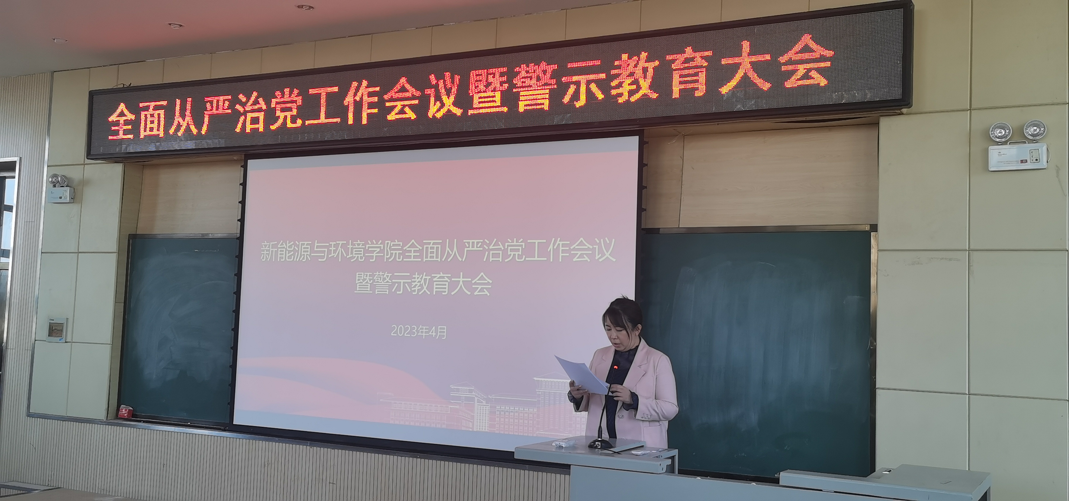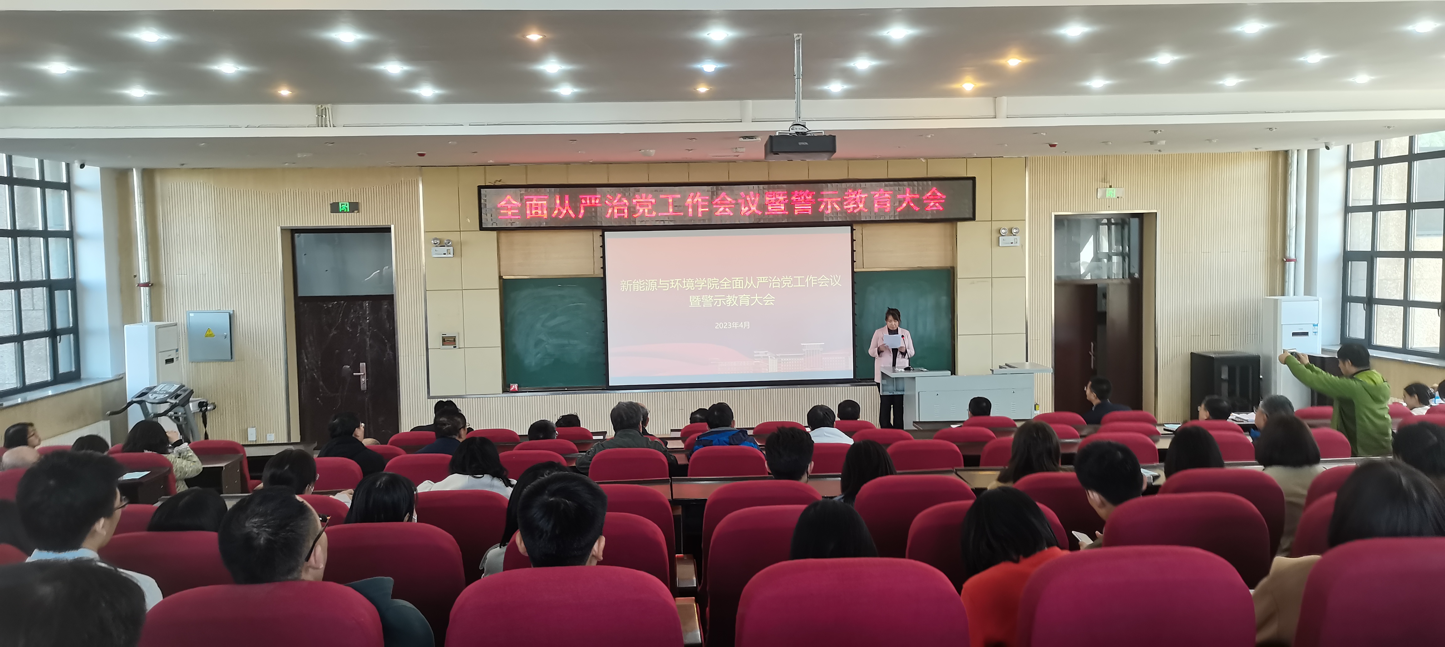 4月21日下午,自拍视频 在北区理化楼第一报告厅召开全面从严治党工作会议暨警示教育大会,学院全体教职工参加了本次会议。会议由学院党委副书记兼副院长、纪委书记吴哲主持。