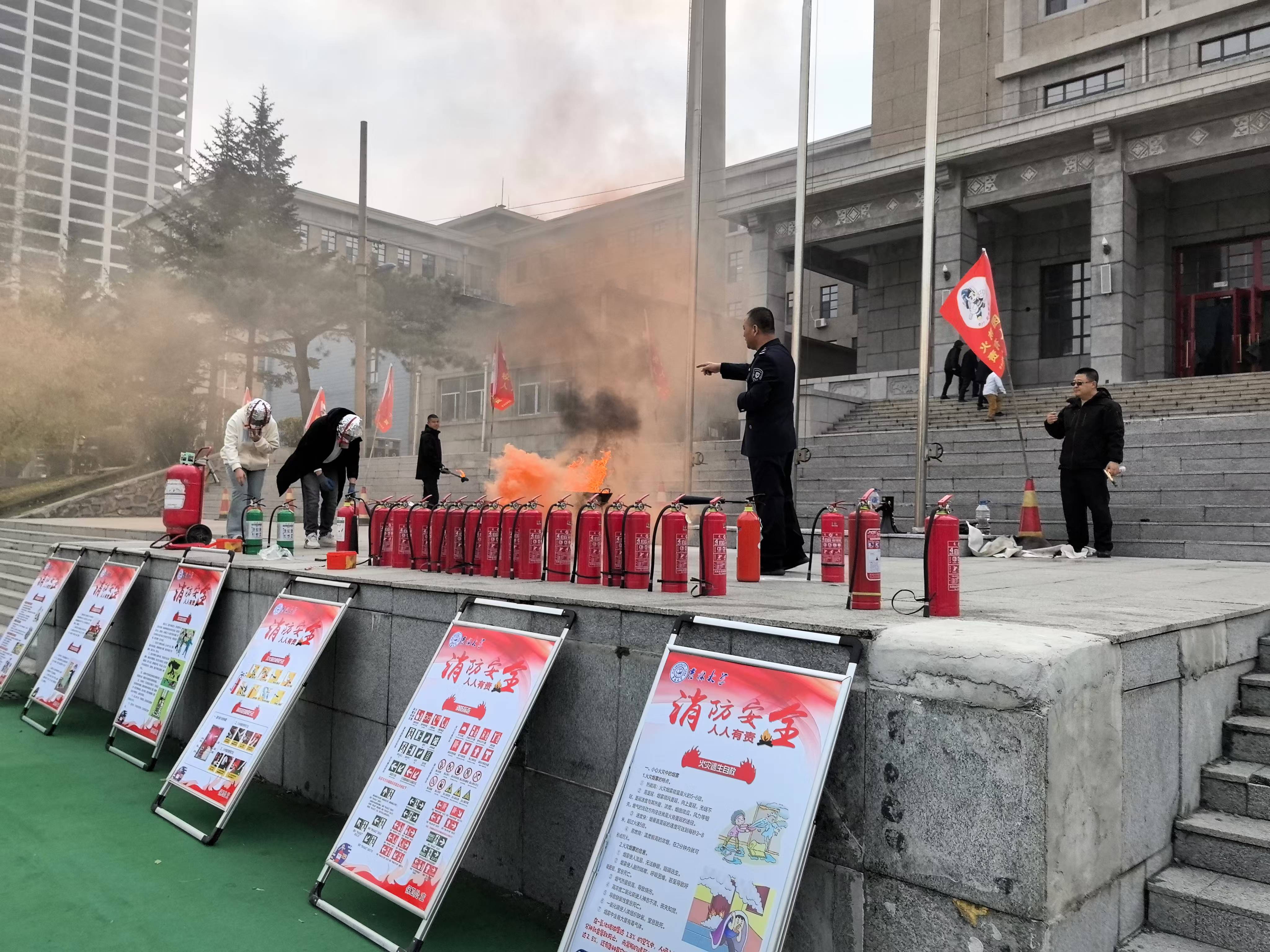 实战演习进行了烟雾逃生演练,模拟理化楼内发生“火情”,楼内教职工、学生和后勤人员迅速展开自救,同时疏散引导组成员打开应急疏散逃生门,各楼层组织人员疏散逃生;学校保卫处接到报警后迅速启动《自拍视频 消防救援应急预案》,组织保卫人员及时赶到现场进行救援处置,并在北操场举行了灭火实战演。